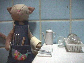 見え難いけどエプロンのアップリケは魚ちゃんで