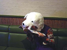 犬、悩んでおります。めっさ、本を見てます。