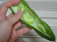 豆好き・・・マメな人も好き・・で大きなそら豆。こんなに大きいんだねー。 見た目からして美味しそうな色をしてるわ♪ 茹でたても甘くて美味しい、そのままでも美味しい。 味を堪能したらその後はクリームチーズと和えてみました。 |