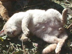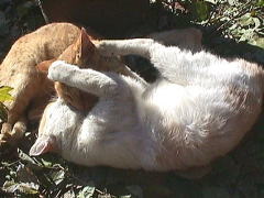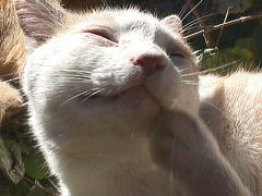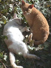 べ: うーん、茶トラにはかなわないや。 ほへぇ〜〜んっっ・・・。 |