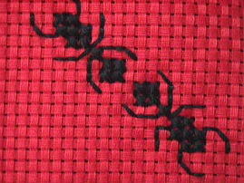 今にも動き出しそうなアリをいっぱい刺繍してみました。