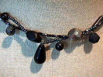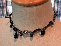 ちょっとハードなイメージ。 金属チックなビーズを使用してみました。 真っ黒なハードな装いに合うかも。 |