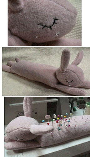 これは私の大切なミシンの上に寝そべってるウサギ型ピンクッション