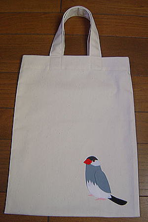 なのでバックにアイロンプリントで「桜文鳥」を作りました。