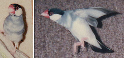 モデルはその頃飼っていたオスの桜文鳥の「おとうちゃん」です。