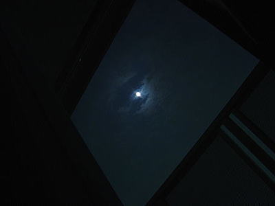 これはベランダそばでゴロンと寝転がって見上げたお月様。