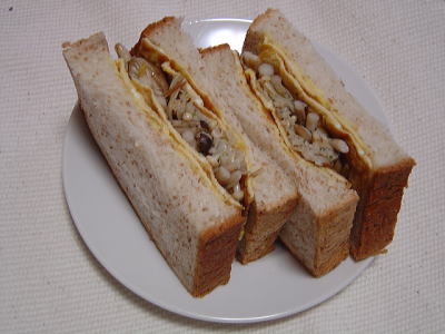 しめじとエノキをバター醤油で炒めて、はい!サンド!!!