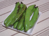 豆好き・・・マメな人も好き・・で大きなそら豆。こんなに大きいんだねー。 見た目からして美味しそうな色をしてるわ♪ 茹でたても甘くて美味しい、そのままでも美味しい。 味を堪能したらその後はクリームチーズと和えてみました。 |
